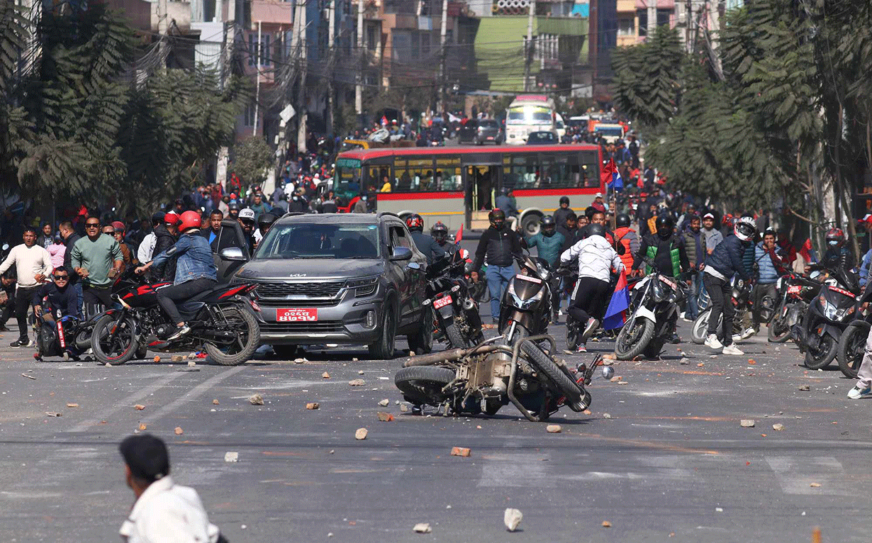 काठमाडौं, ७ मंसिर–काठमाडौंको बल्खु चोकमा ढुंगामुढा र तोडफोड भएको छ । कालिमाटीबाट बल्खु हुँदै तीनकुने आउन लागेको युवा संघको बाइक र्यालीमाथि बल्खुमा ढुंगा प्रहार भएपछि झडप भएको हो ।