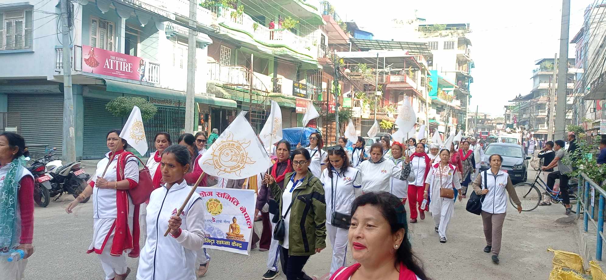 महाधिवेशनस्थल दमकस्थित पशुपति मन्दिरबाट निस्किएको र्याली शंकरध्वोज चोकहुदै नमुन मार्गबाट नगरपालिका कार्यालय, फाल्गुनन्द चौक परिक्रमा गरेर पुर्नः पशुपति मन्दिरमा आइपुगेको थियो । र्यालीमा पातञ्जल योग समितिका राष्ट्रिय अध्यक्ष बाल मुकुन्द सुवाल, उपाध्यक्षहरु होमप्रसाद गौतम, सुर्वण चित्रकार, महासचिव नवराज काफ्ले, कोशी प्रदेश अध्यक्ष केशव ताम्राकार लगायत झापा लगायत देशभरीका झण्डै दुई सय बढी प्रतिनिधि तथा पर्यवेक्षकहरुको सहभागिता थियो ।