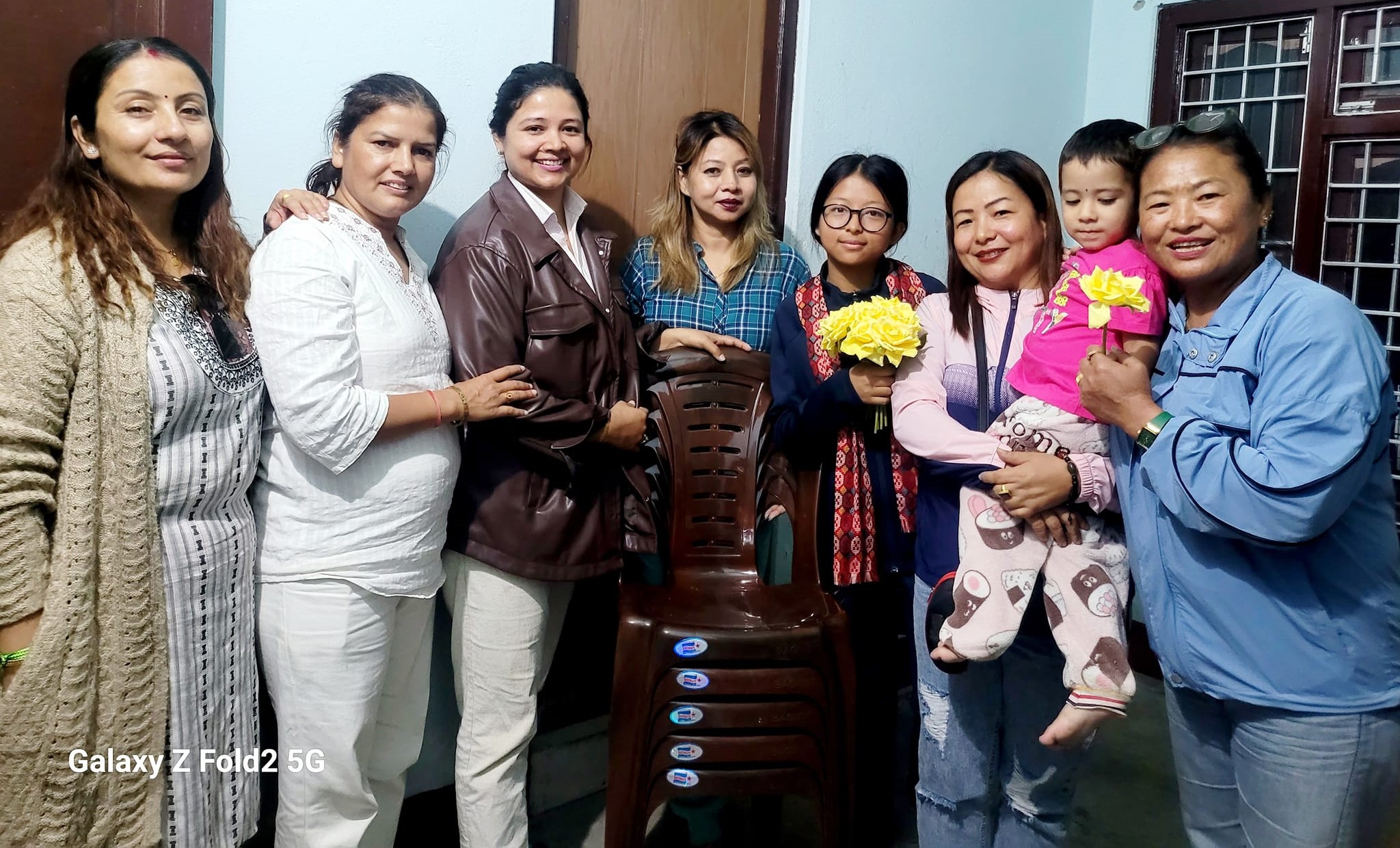 आफ्नो पहल र नेतृत्वमा स्थापना भएको दमकस्थित सुन्दर समाज नेपालको कार्यालय व्यवस्थापनमा सहयोग पुगोस भन्दै १० थान कुर्सी उपलब्ध गराएर छोरी माङ्गेनाको जन्मदिन मनाएकी हुन् । १० थान कुर्सी संस्थाकी अध्यक्ष विन्दु (लक्की) सिटौलासहित पदाधिकारी र सदस्यहरुको उपस्थितीमा आमा रुपा र छोरी माङ्गेनाले हस्तान्त्रण गरेका थिइन् ।