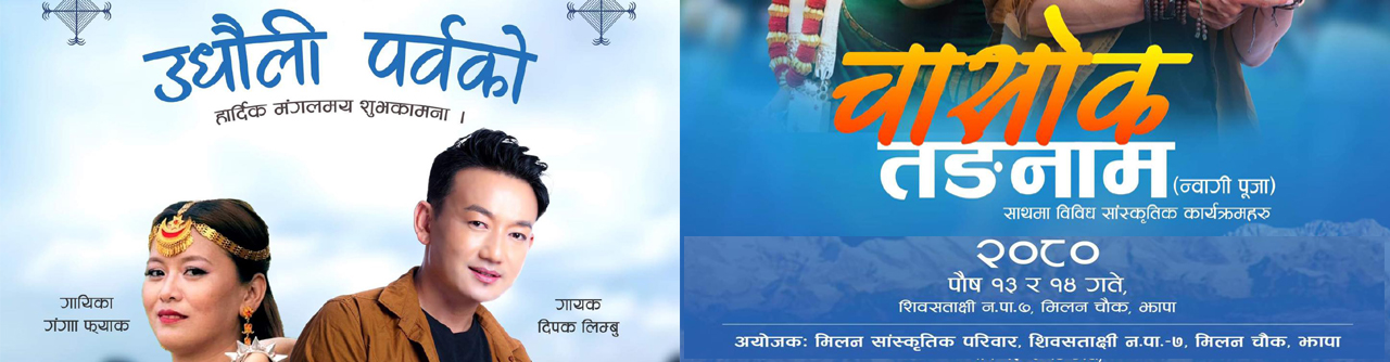 झापाको शिबसताक्षी–७ मिलन चौकमा मिलन साँस्कृतिक परिवारले यहि पौष १४ गते शनिबारका दिन वृहत साँस्कृतिक तथा सांगीतिक कार्यक्रम हुने भएको छ ।