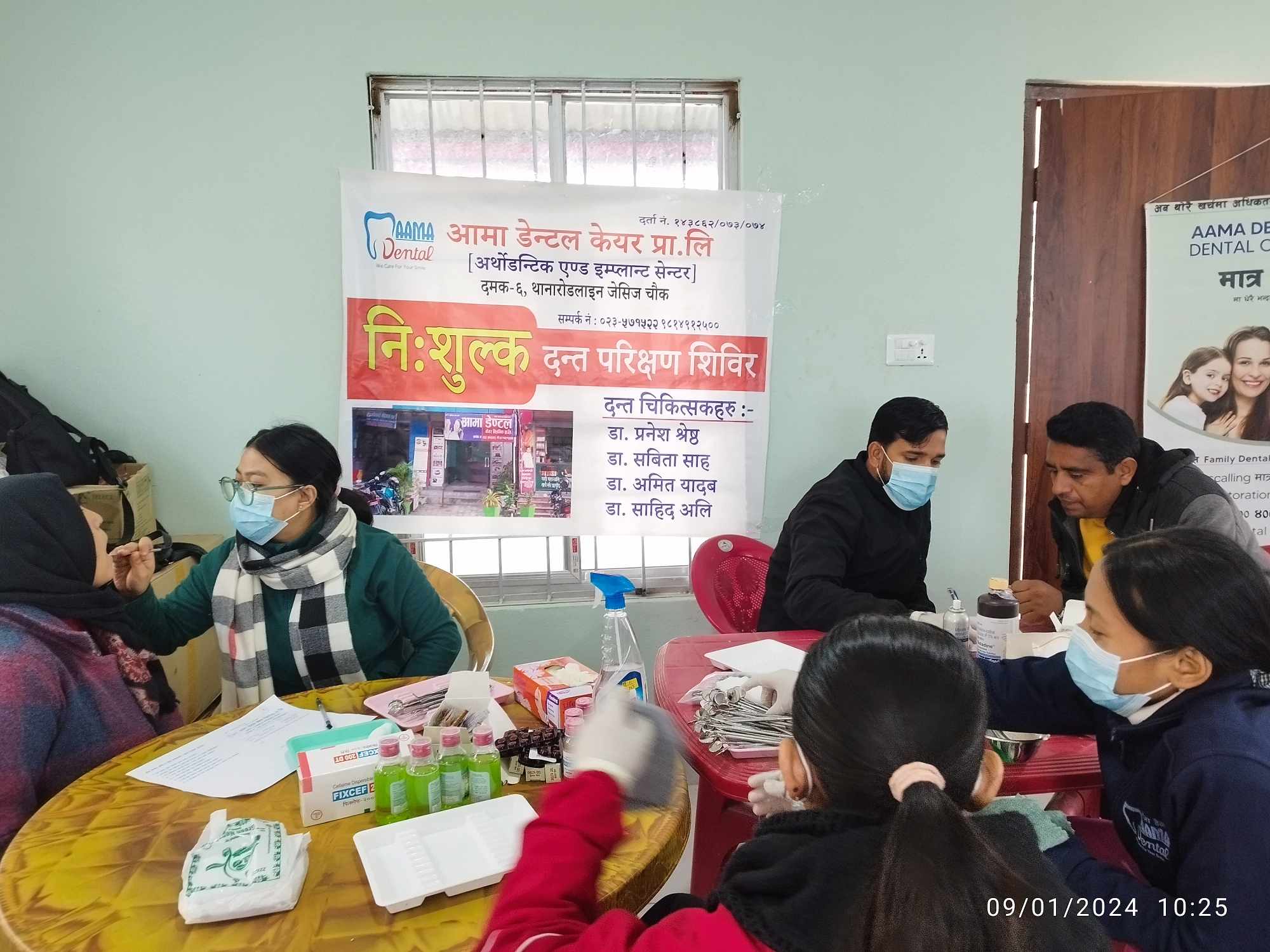 दमकस्थित जेसिज चोकमा अवस्थित आमा डेन्टल केयर प्रालिले सामाजिका उत्तरदायित्व अन्तर्गत दन्त सम्बन्धी निःशुल्क शिविर आयोजना गर्दै आइरहेको प्रबन्धक श्रेष्ठले जानकारी दिनुभयो ।