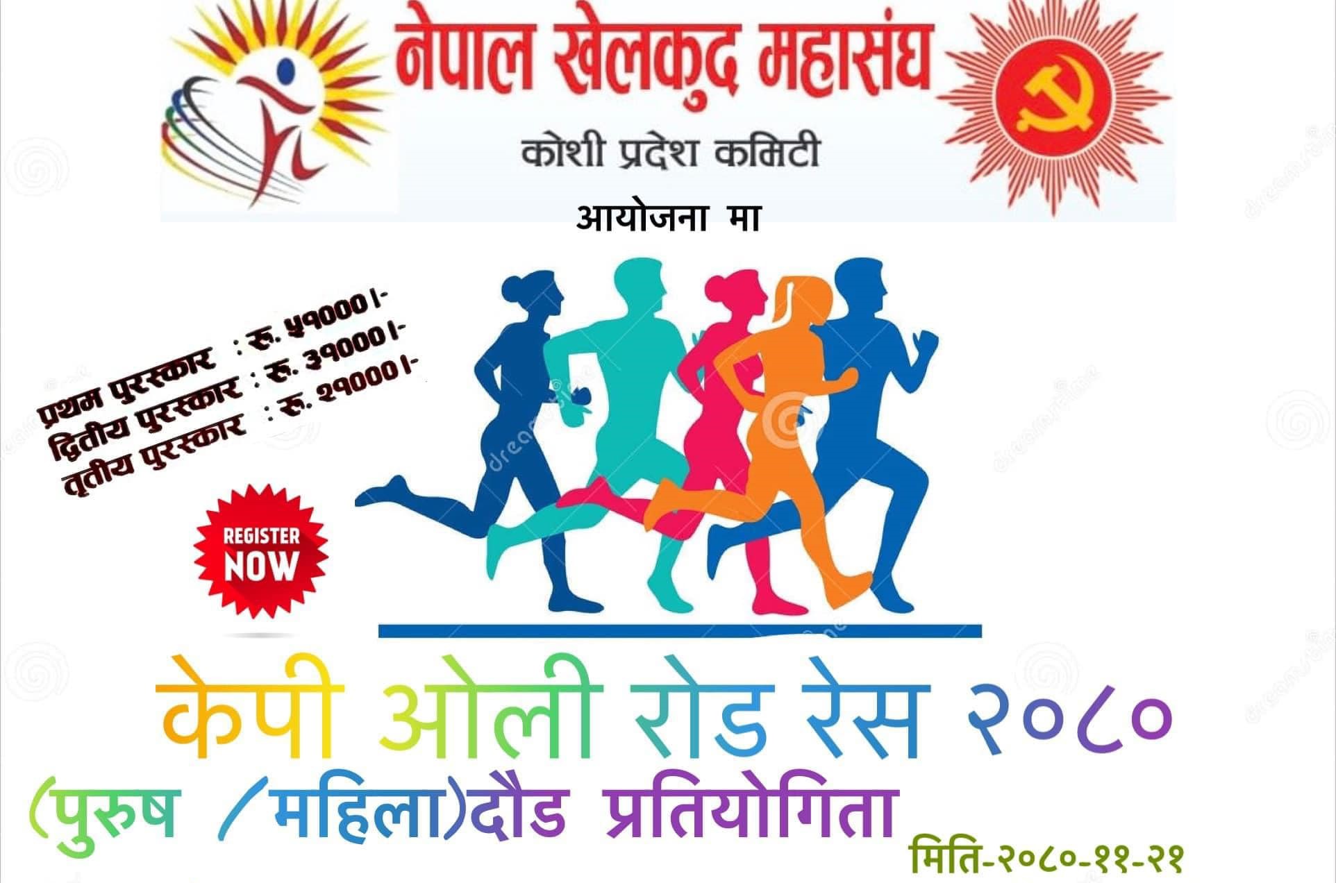 दमक १६ फागुन–शहीद दिवसका अवसर पारेर झापामा ‘केपी ओली रोड रेस’–२०८० आयोजना गरिने भएको छ । नेकपा एमाले निकट नेपाल खेलकुद महासंघ (नेकोस) कोशी प्रदेश कमिटीले मंगलवार दमकमा पत्रकार सम्मेलन गरि केपी ओली रोड रेस प्रतियोगिता आयोजना गर्ने जानकारी दिएको हो ।
