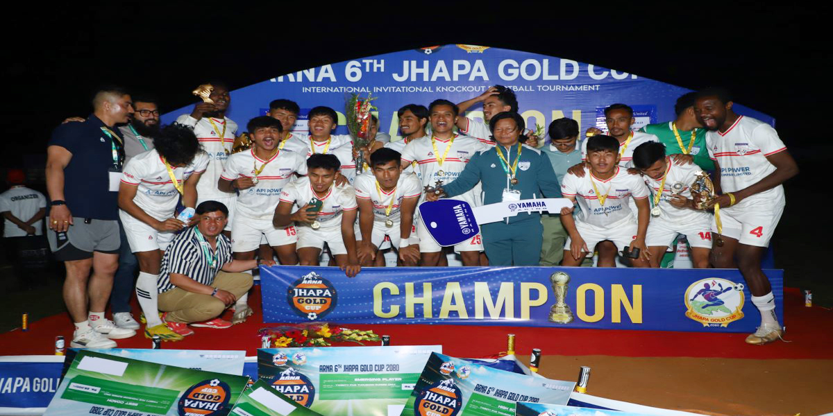 बिर्तामोड, २८ फागुन–नाइजेरियन स्ट्राइकर अबयोमी ओलुवासेउन फकुन्लेको दुई गोल प्रेरित चर्च ब्वाइज युनाइटेड झापा गोल्डकप फुटबलको नयाँ च्याम्पियन बनेको छ । सोमबार भएको फाइनल खेलमा चर्च ब्वाइजले विभागीय टोली सश्स्त्र प्रहरी बलको एपिएफ एफसीलाई ३–० ले पराजित गर्यो ।