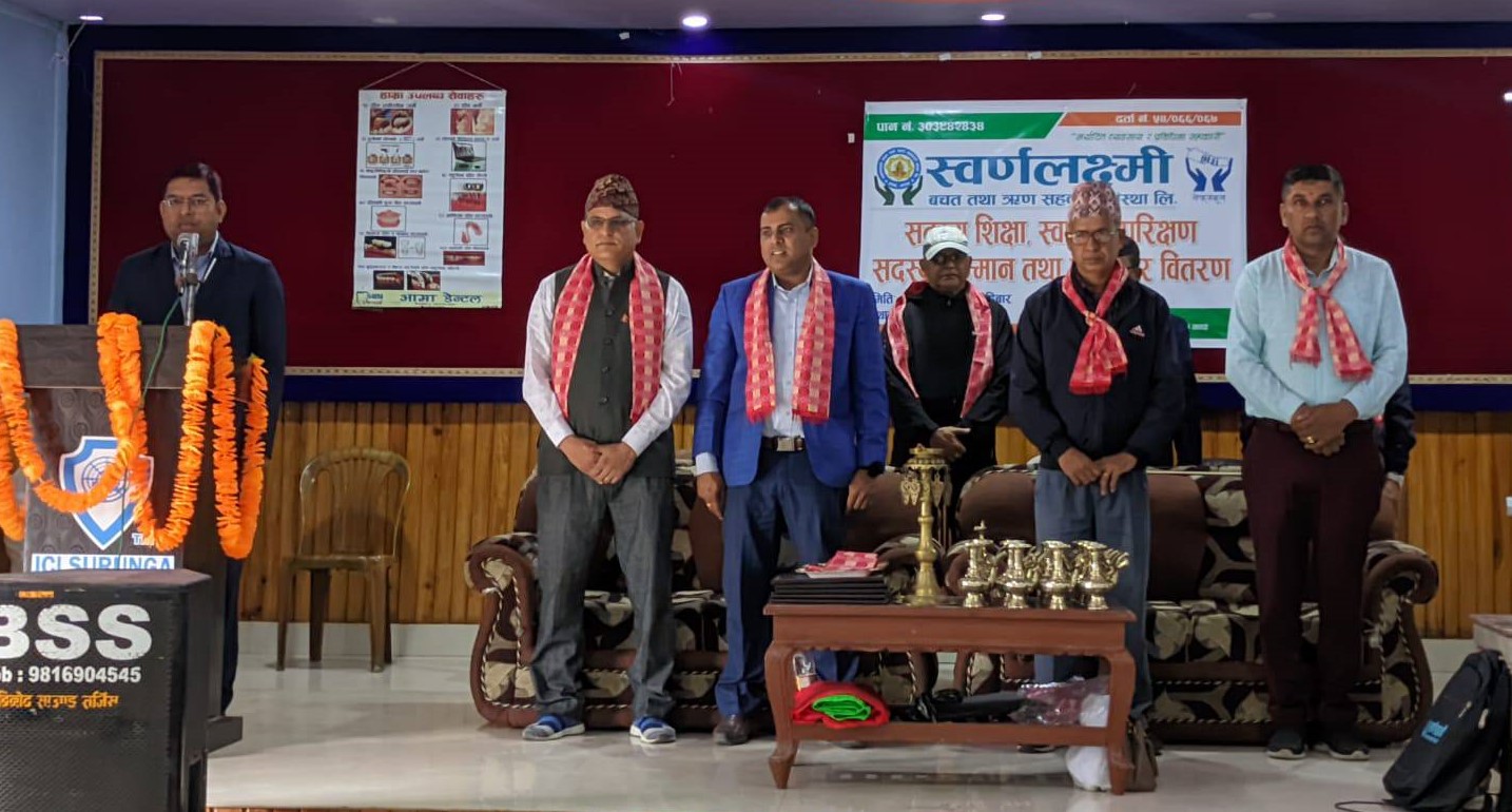 सहकारी संस्थाका अध्यक्ष बुद्धिसागर बरालको अध्यक्षतामा र कनकाई नगरपालिका वडा नं ३ का अध्यक्ष युवराज चौलागाईको प्रमुख आतिथ्यतामा १५औं स्थापना दिवस मनाइएको हो । सो अवसरमा स्वर्णलक्ष्मी साकोसको सुरुङ्गा सेवा केन्द्रमा कारोबार गर्ने सदस्यहरुबाट उत्कृष्ट कारोबार गर्ने चेतनकुमार प्रसाई, धनकुमारी प्रधान, निरोज सुवेदी, अनिता अग्रवाल र ऋषिकेश मैनालीलाई सम्मान गरेको छ ।