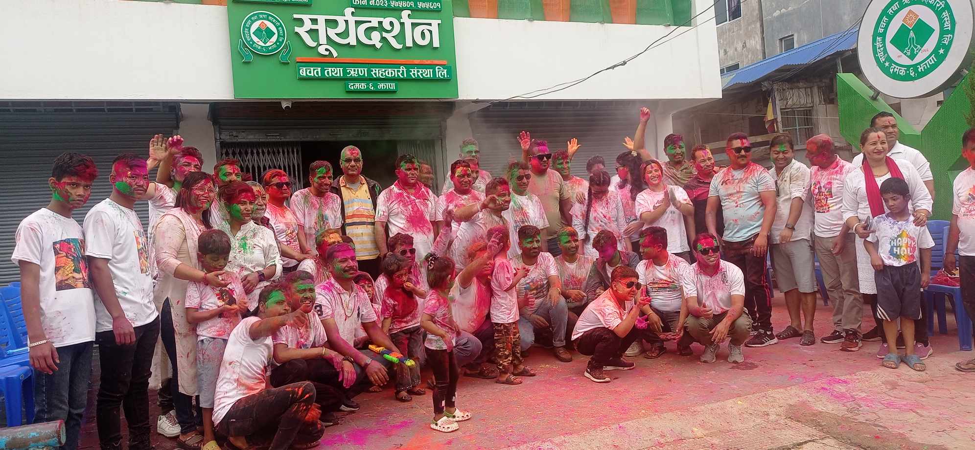 यसअघि, सूर्यदर्शन साकोसले होली विशेष कार्यक्रमहरु गर्दै आइरहेको र यसवर्ष पनि निरन्तरता दिइएको कर्जा विभाग प्रमुख नेपालले बताए । नेपालका अनुसार होली पर्वमा एक आपसमा भेटघाट गरेर प्रेम र आत्मियताको प्रतिक रङ्ग दलेर होली मनाउनुका छुट्टै धार्मीक मान्यता छ ।
