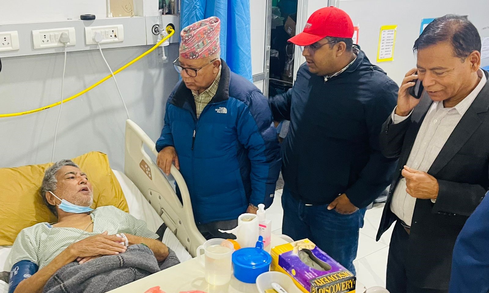 पार्टी अध्यक्ष नेपालसहित उपाध्यक्ष प्रमेश हमाल, केन्द्रीय सदस्य घिमिरेलगायतका नेताहरू बुढाथोकीको स्वास्थ्य अवस्था बुझ्न गंगालाल हृदय केन्द्र बाँसबारी पुग्नुभएको थियो।