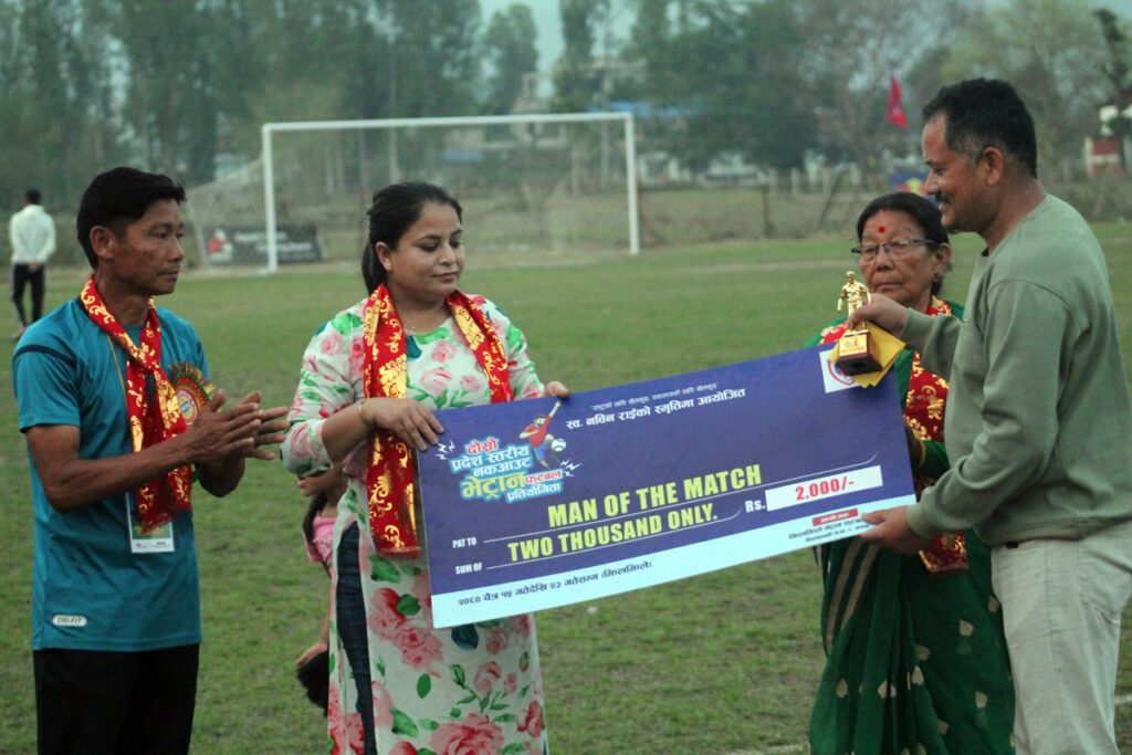 खेलको म्यान अफ दी म्याच दमकका गोल किप्पर शिवजी बस्नेत घोषित भए । उनले नगद २ हजार प्राप्त गरे ।
