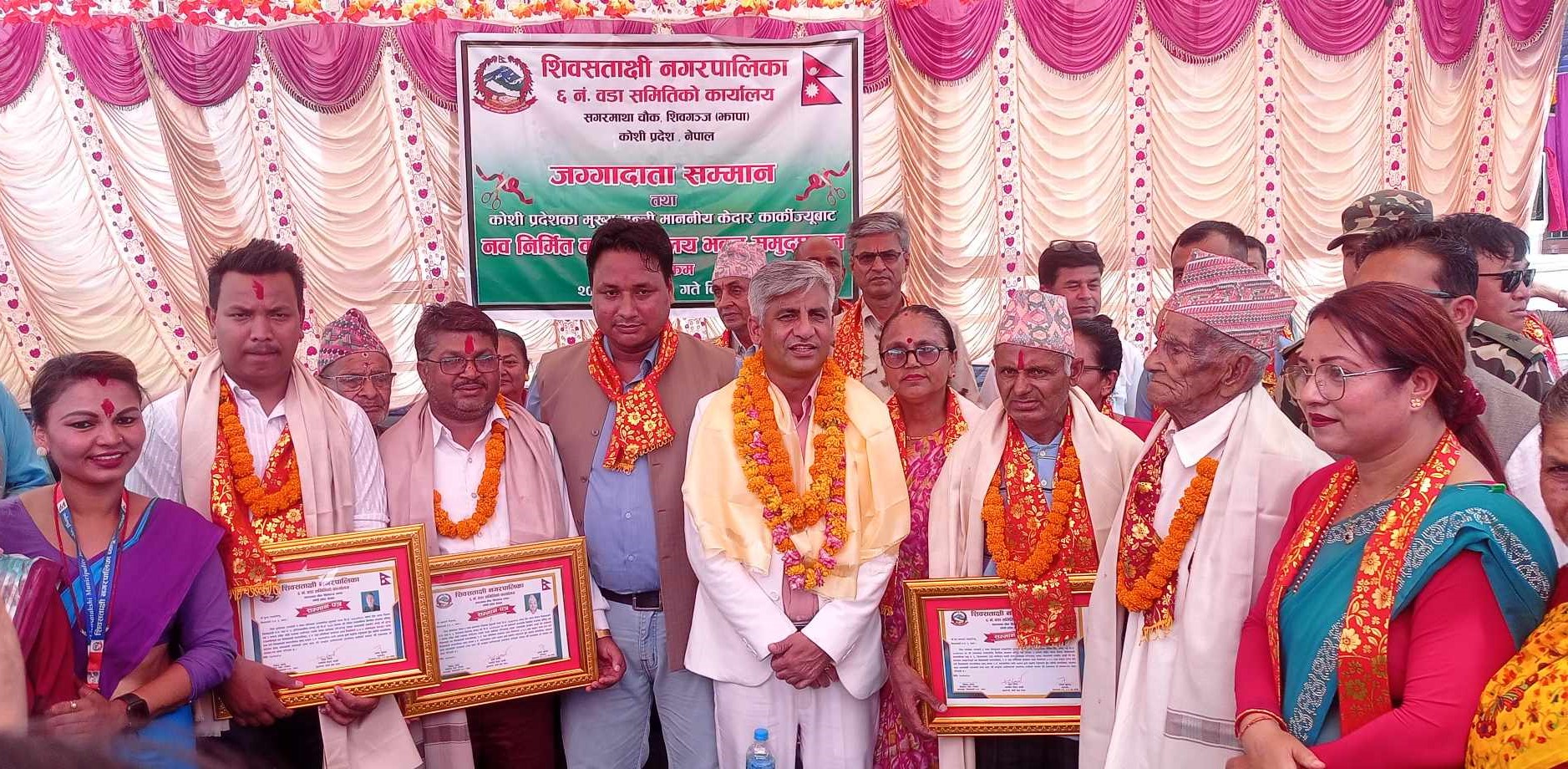 वडा कार्यालय भवनको उद्घाटनपछि आयोजित समारोहमा जग्गादान गर्नुहुने चार जना दानवीरहरुलाई मुख्यमन्त्री कार्कीले सम्मान–पत्रसहित दोसल्ला ओढाएर सम्मान गर्नुभएको छ । सम्मानित हुने जग्गादाताहरुमा स्थानीय सुरज राजवंशी, दुर्गाप्रसाद गुरागाइँ, चन्द्रमणी पौडेल र देवनारायण भण्डारीलाई समारोहका प्रमुख अतिथि समेत रहनुभएका मुख्यमन्त्री कार्कीसहित शिबसताक्षी नगर उपप्रमुख नरमाया कार्की र वडा अध्यक्ष मनाज खुलाल कार्कीले सम्मान पत्र र दोसल्ला ओढाएर सम्मान गुर्नभएको थियो ।