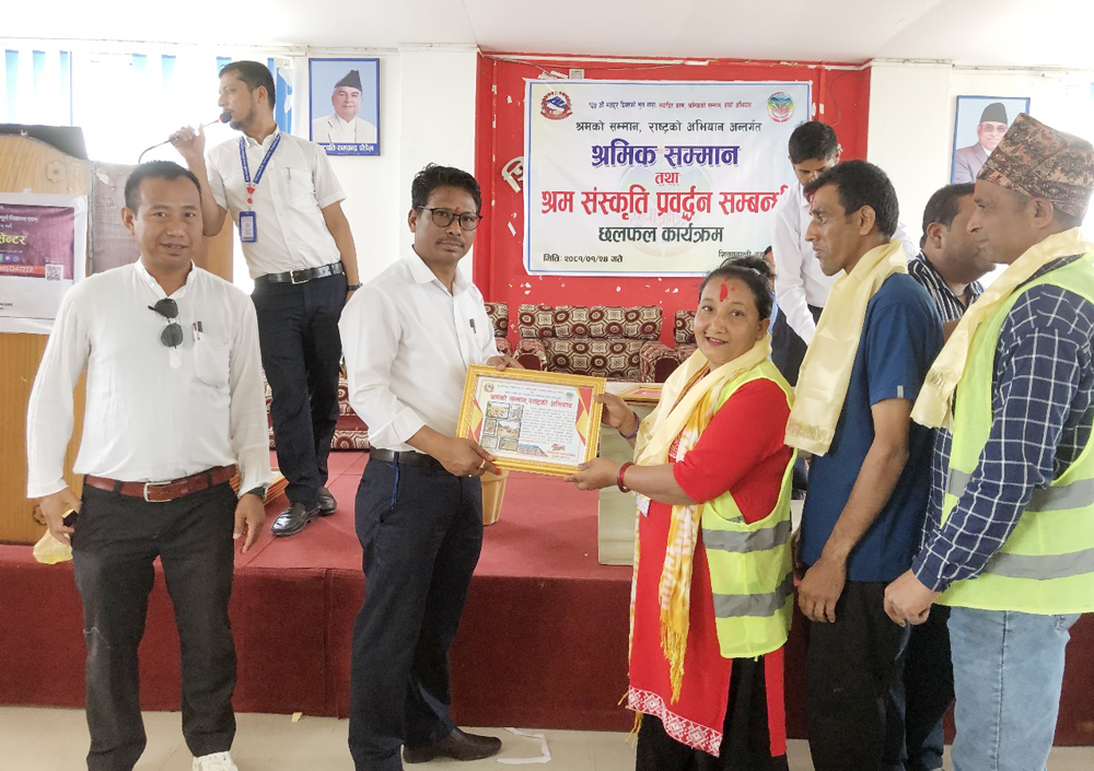 नगरको रोजगार शाखाले १ सय दिन ज्यालमा काम गर्ने श्रमिकहरुलाई थप हौसला प्रदान गर्न श्रम संस्कृति प्रवद्र्धन कार्यक्रम अन्तर्गत सम्मान गरिएको रोजगार संयोजक विदुर तिम्सिनाले जानकारी दिए । उनीहरुलाई नगरप्रमुख मेगाहाङ्ग थोप्रा लगायतले सम्मान स्वरुप मायाको चिनो प्रदान गरेका थिए ।