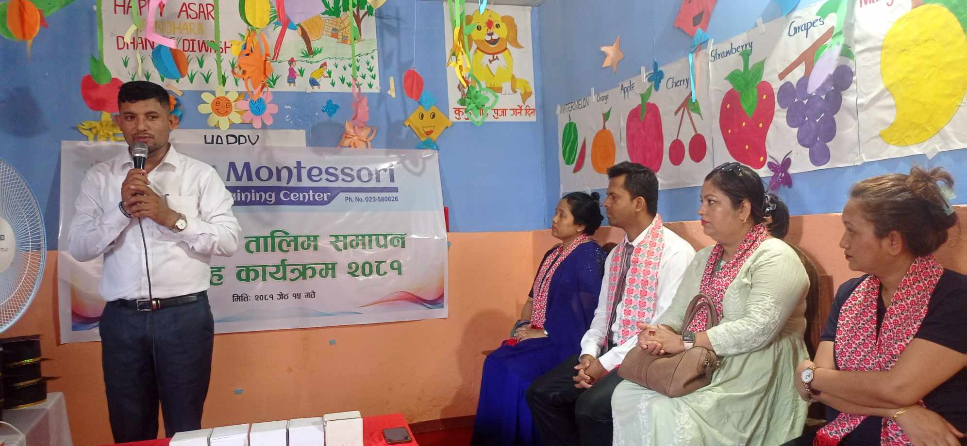 बेथेल एकाडेमी स्कुलका सस्थापक तथा शिक्षिका बबिता न्यौपानेको अध्यक्षतामा र दमकस्थित डेलिया मन्टेश्वरीकी अभिबाहक संघकी अध्यक्ष जमुना खरेलको प्रमुख आतिथ्यतामा तालिम समापन समारोह भएको थियो । तालिममा एक महिनासम्म सहभागित प्रशिक्षार्थीहरुले आ–आफ्नो अनुभव र सिकेको सिप र ज्ञानका कुराहरु आदान–प्रदान गरिएको थियो ।