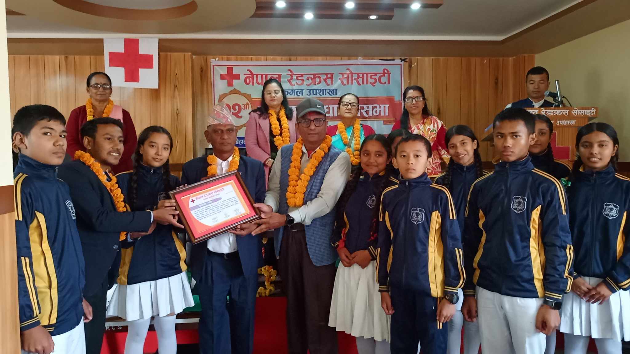 सभामा रेडक्रसले पालिकाभित्रका विद्यालयस्तरमा गठन गरेको युवा रेडक्रस सर्कलहरुमध्ये उत्कृष्ठ हुने सामुदायिक विद्यालयतर्फ कमल २ को मदनआश्रित स्मृति मावि र संस्थागततर्प कमल-५ को स्मारिका सामुदायिक बोर्डिङ स्कूललाई प्रशंसापत्र प्रदान गरिएको थियो ।
