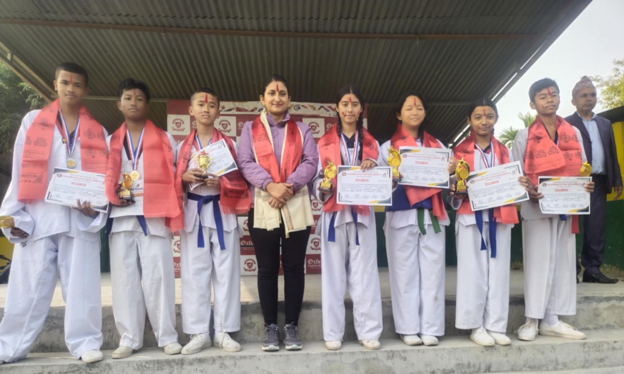 विद्यालयमा एक संक्षिप्त कार्यक्रमको आयोजना गरेर तेक्वान्दो खेलतर्फ प्रतियोगिताम सहभागि भएर पदक जित्न सफल व्रिद्यार्थीहरुलाई सम्मान गरेको हो । सगरमाथा तेक्वान्दो डोजाङले प्रशिक्षण गराइरहेको अक्सफोर्ड अंग्रेजी माध्यमिक विद्यालयबाट विद्यार्थीहरुले राष्ट्रपति रनिङ शिल्ड प्रतियोगितामा सहभागि जनाएका थिए ।