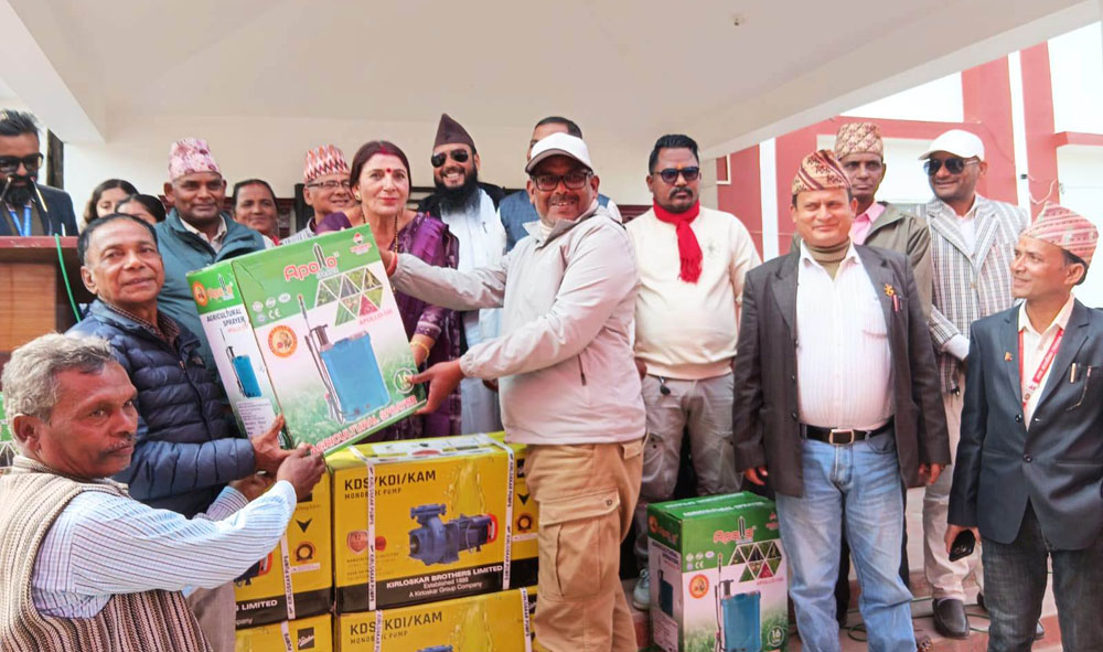 गाउँपालिकाभित्रका सबै वडामा एकैसाथ १ सय ७६ थान विद्युतीय मोटर र ३ सय ३८ थान स्प्रे ट्याङ्की वितरण गरेको कार्यवाहक अध्यक्ष अन्जुदेवी थपलियाले जानकारी दिनुभयो ।