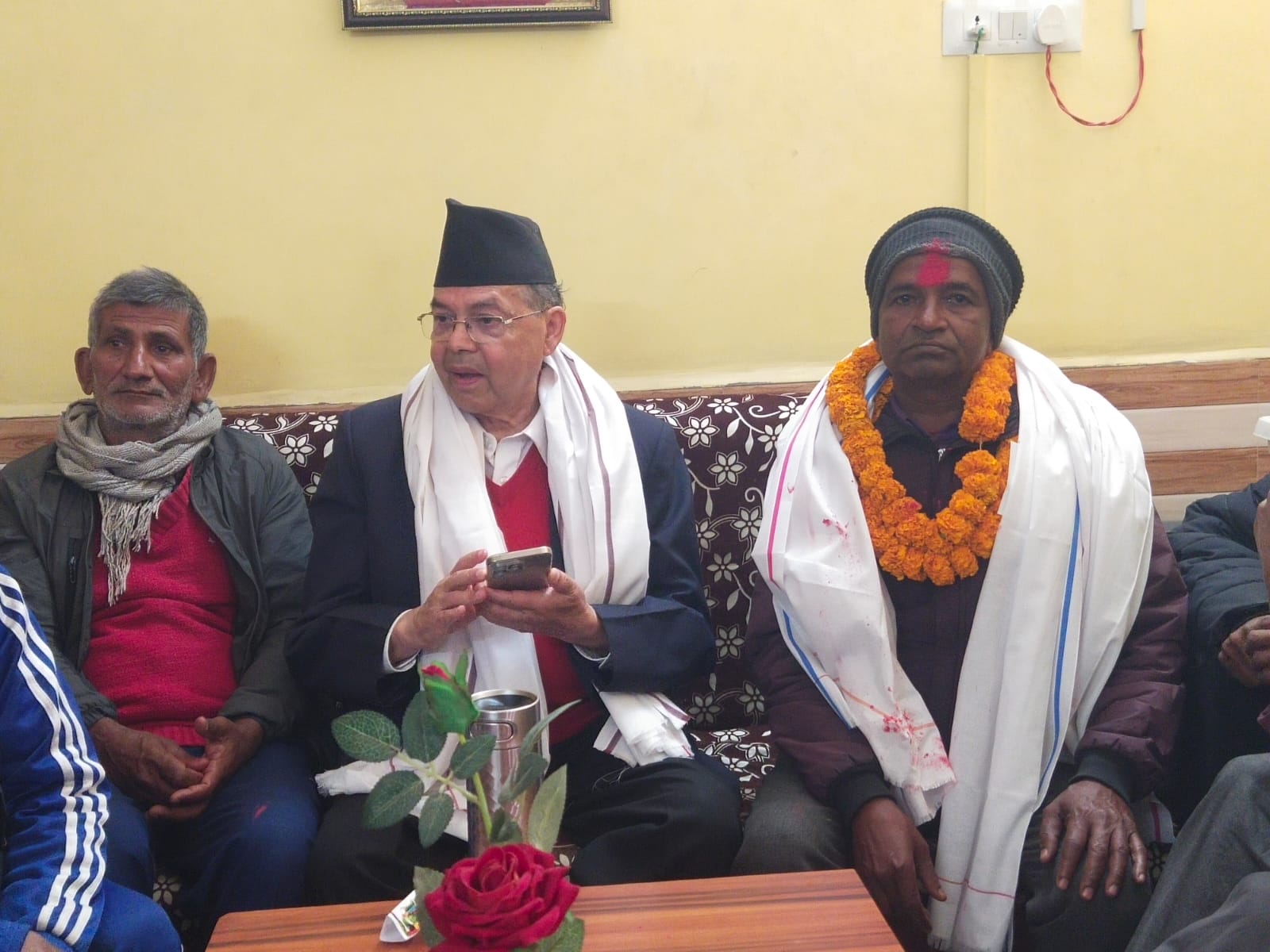 सप्तरीको राजविराजमा एकीकृत समाजवादी पार्टीका सम्मानित नेता तथा पूर्वप्रधानमन्त्री झलनाथ खनाले नेता रामधन रायलाई स्वागत गर्नुभएको हो।