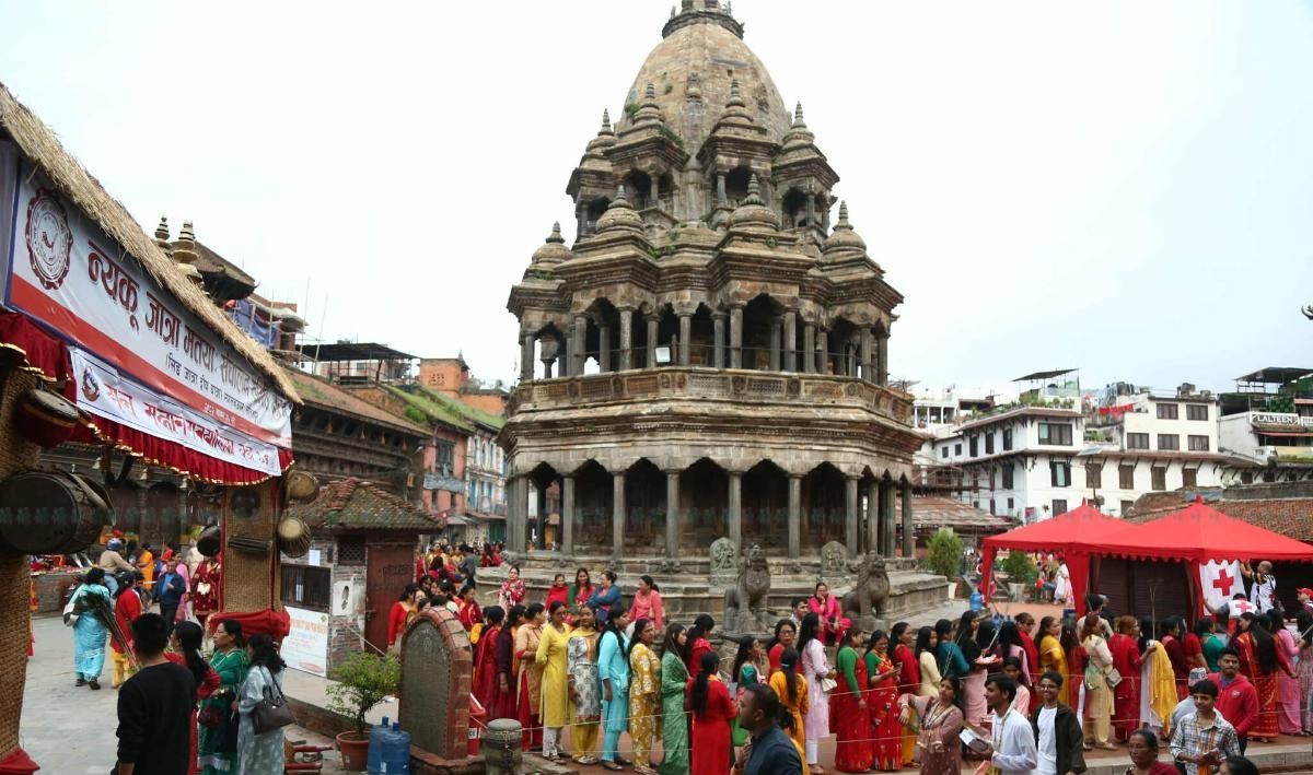 कृष्ण मन्दिरमा बिहानैदेखि भक्तजनहरूको भिड लागेको छ।