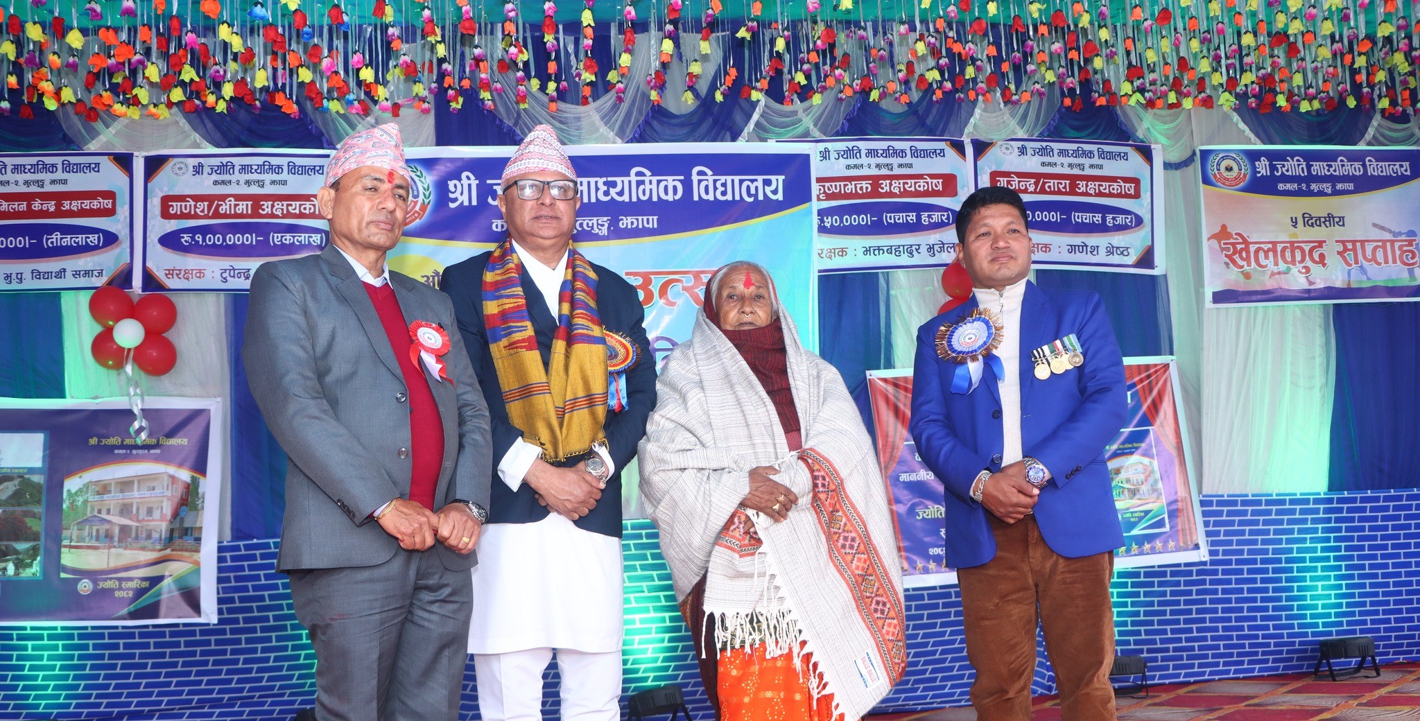 सोमबार, विद्यालय परिसरमा आयोजित कार्यक्रममा कोशी प्रदेशका मुख्यमन्त्री हिक्मत कार्कीले ज्योती स्मारिकाको विमोचन गर्नुका साथै दानवीर र विद्यार्थीहरुलाई सम्मान गर्नुभएको थियो ।