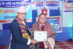 सोमबार, विद्यालय परिसरमा आयोजित कार्यक्रममा कोशी प्रदेशका मुख्यमन्त्री हिक्मत कार्कीले ज्योती स्मारिकाको विमोचन गर्नुका साथै दानवीर र विद्यार्थीहरुलाई सम्मान गर्नुभएको थियो ।
