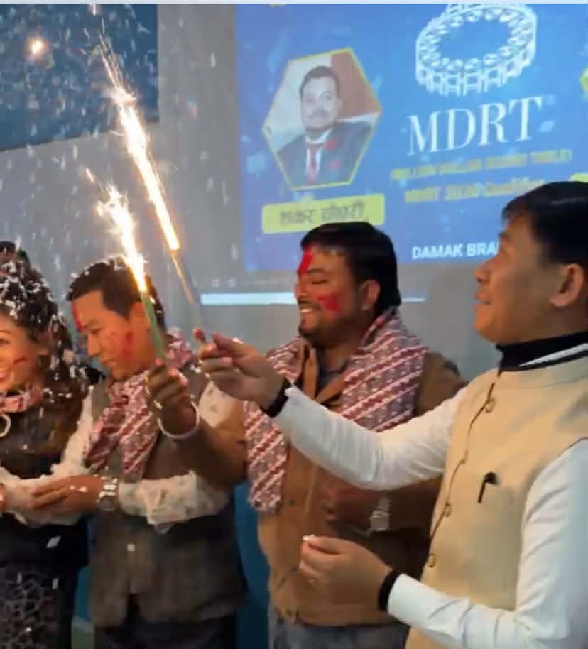 नेशनल लाइफ इन्स्योरेन्स कंम्पनीका बजार उपप्रवन्धकसमेत रहनुभएका दमक शाखा प्रमुख राईले चौधरी र राईले वीमा व्यवसाय गरेको छाटो समयमै कम्पनीले तोकेको सवै प्रकृयाहरु पुरा गरेर मिलियन डलर राउण्ड टेवाल (एमडिआरटी) मा छनौट हुनुभएको बताए ।