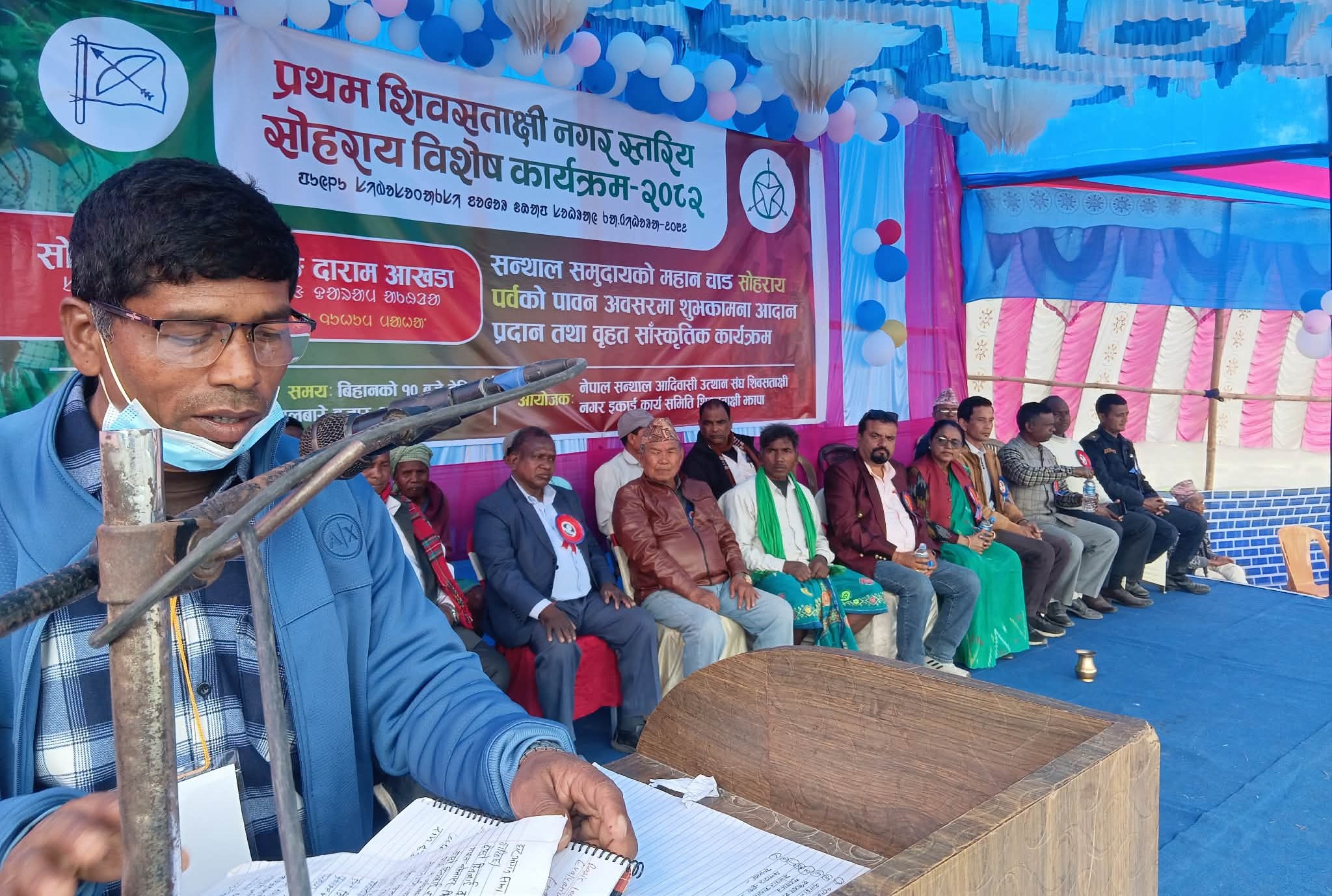 सोही समारोहमा नगर उपप्रमुख नरमाया कार्कीले सन्थाल समुदायले मौलिकता र परम्परागत रुपमा मनाइने यस्ता चार्डपर्वले समग्र समाथ र राष्ट्रको परिचय र पहिचानलाई उच्च बनाउने जिकिर गर्नुभयो ।