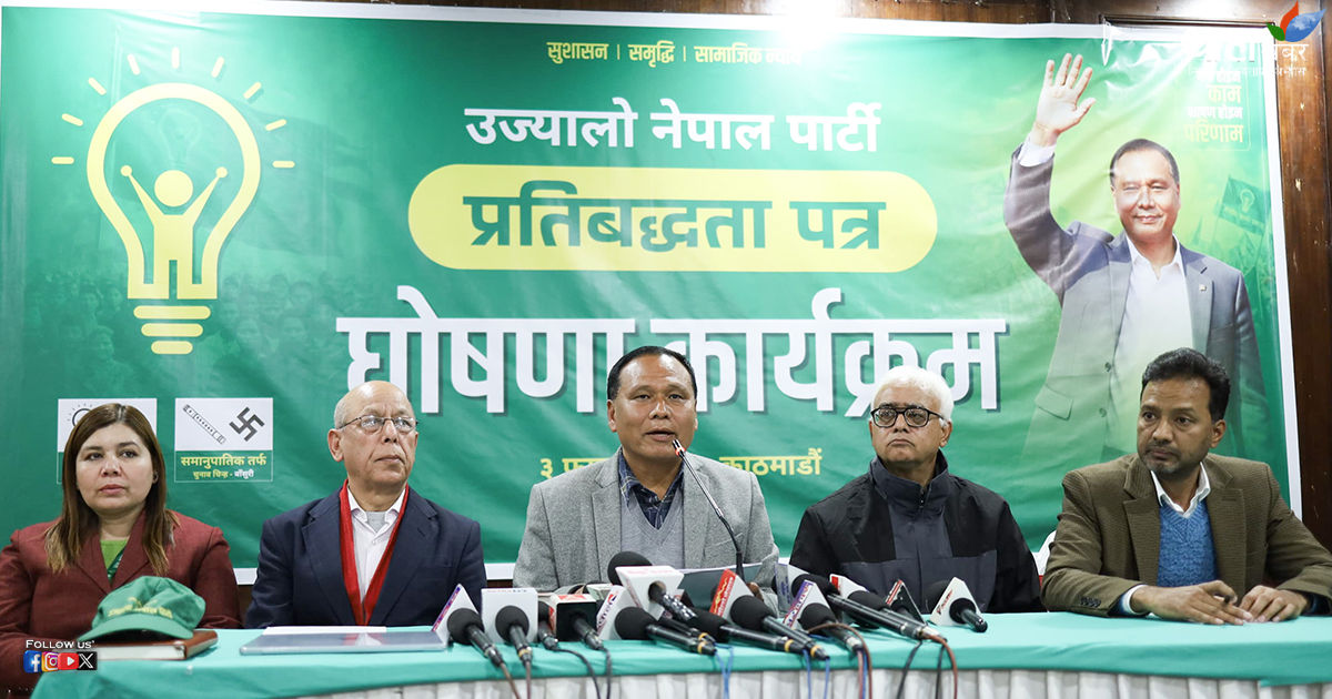 काठमाडौं, ४ फागुन–उज्यालो नेपाल पार्टीले फागुन २१ गते हुने निर्वाचनका लागि आफ्नो प्रतिवद्धता पत्र सार्वजनिक गरेको छ।