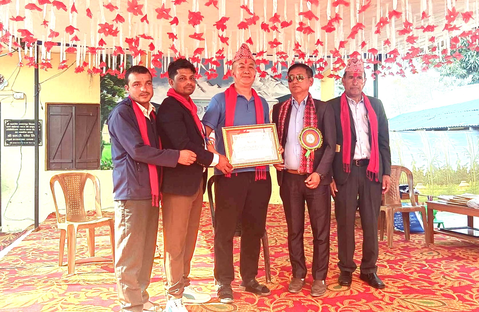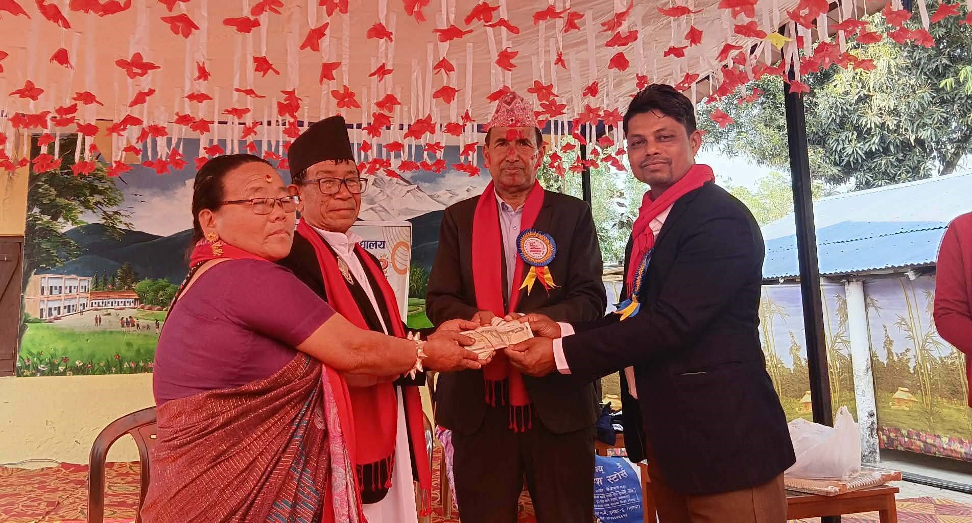 विद्यालयमा निजी श्रोतबाट लामो समयसम्म अध्यापन गरेर अवकास हुनुहुने शिक्षिका कृष्णमाया आङ्बोलाई दोसल्ला ओढाएर सम्मानपत्र प्रदान गरिएको थियो । त्यस्तैं, विद्यालयमका पूर्व सहायक प्रधानाध्यापक बमबहादुर बुढाथोकीलाई पनि दोसल्ला ओढाएर सम्मानपत्र प्रदान गरिएको थियो ।