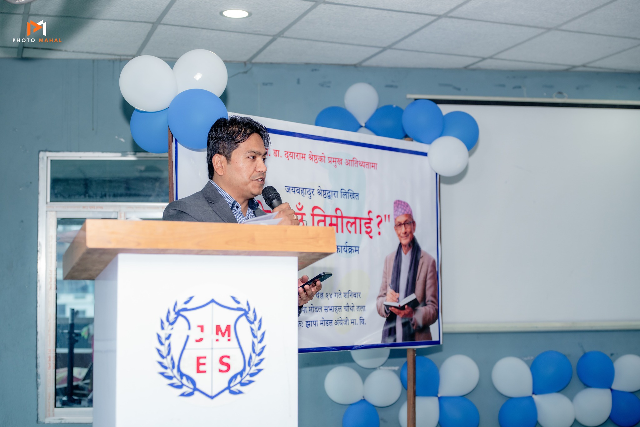 कार्यक्रममा विद्यालयका प्रधानाध्यापक सागर श्रेष्ठले स्वागत मन्तव्य र कृतिको समीक्षात्मक प्रस्तुति साहित्यकार शिव रेग्मी ‘प्रणत’ ले गरेका थिए ।