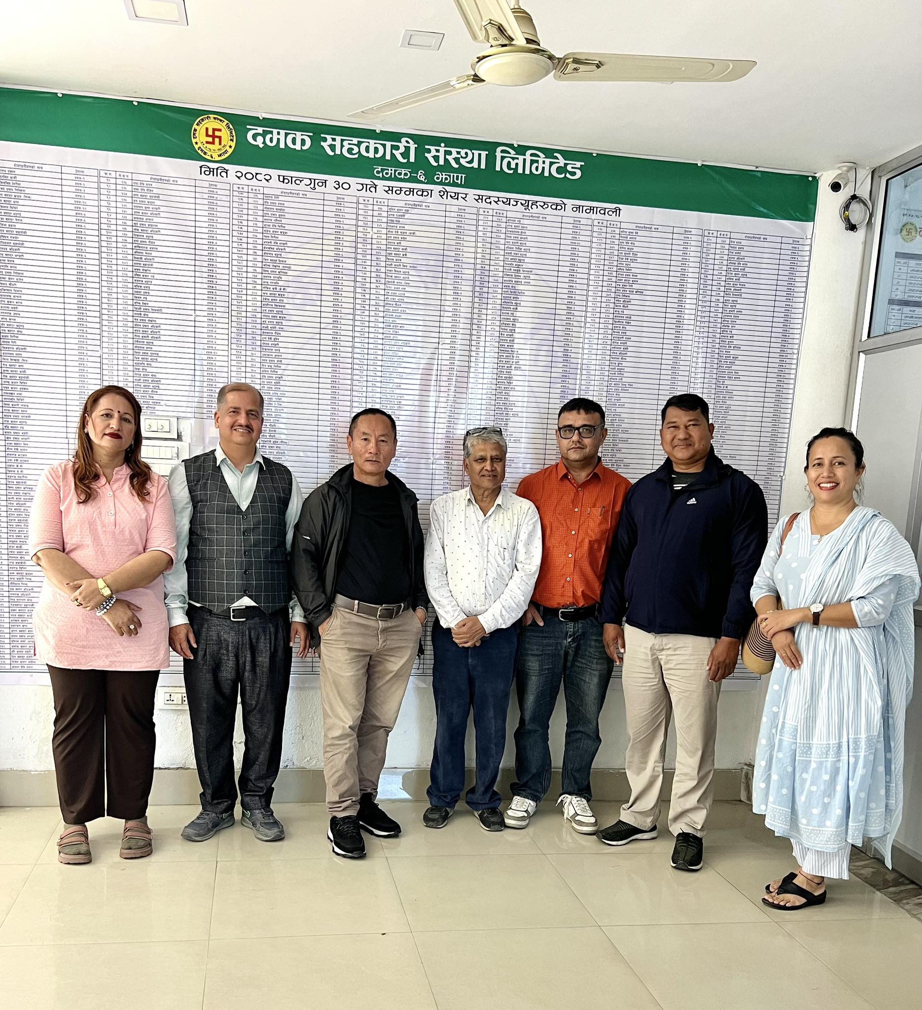 दमक, १७ चैत–दमक सहकारी संस्थाको सञ्चालक तथा लेखा सुपरीवेक्षण समितिको नयाँ नेतृत्व चयन भएको छ ।