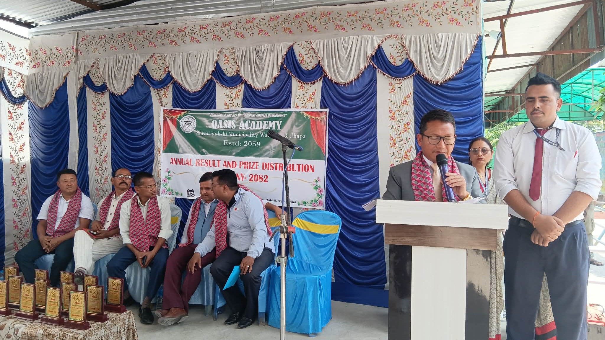 समारोहमा ओएसिस एकाडेमीका संस्थापक प्रिन्सिपल राईले विद्यालयको प्रगती प्रतिवेदन प्रस्तुत गनर््भएको थियो ।